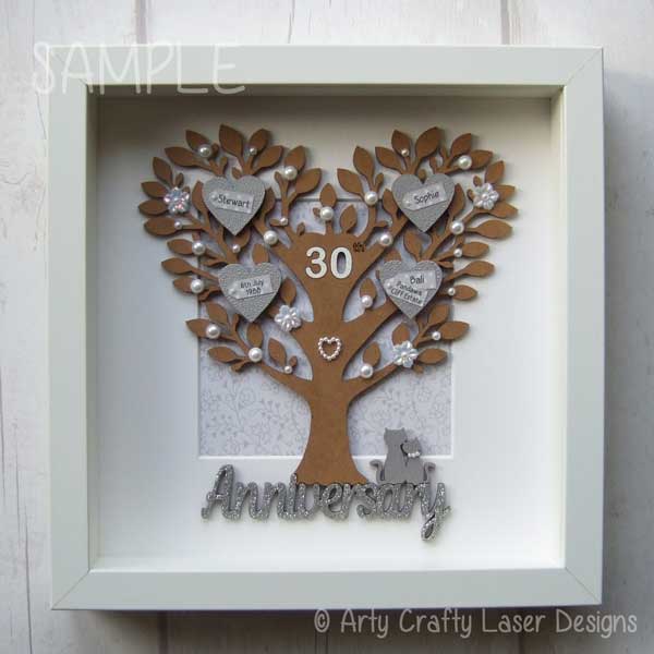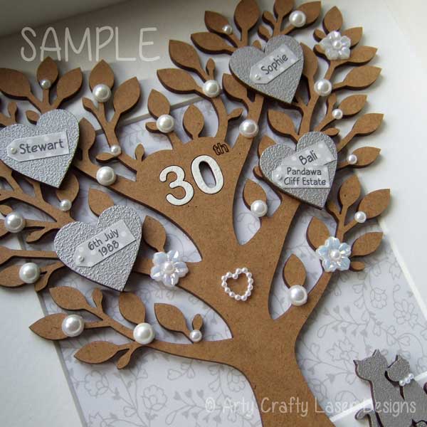 MDF 30th Wedding Anniversary “Pearl” Family Tree Craft Blank with Cute Cats
