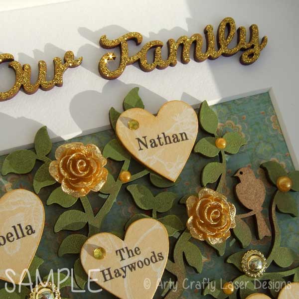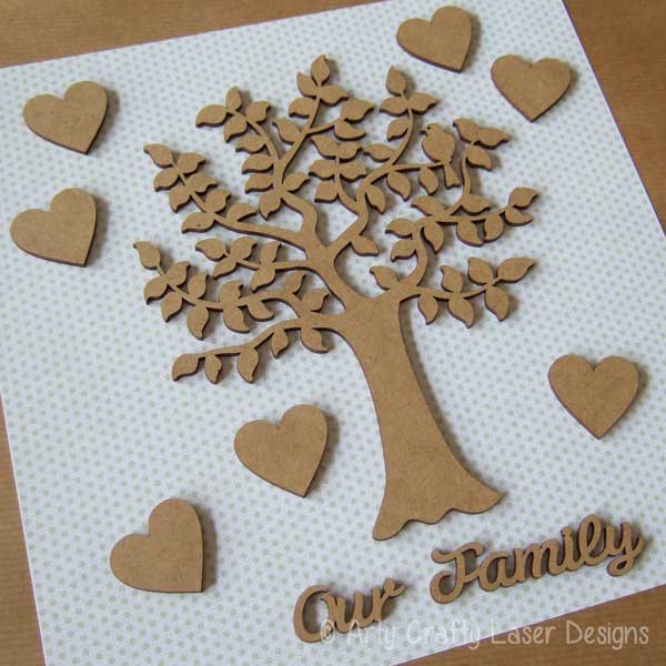 MDF Family Tree with Bird Craft Blank Laser Cut with 7 Hearts & Words Our Family