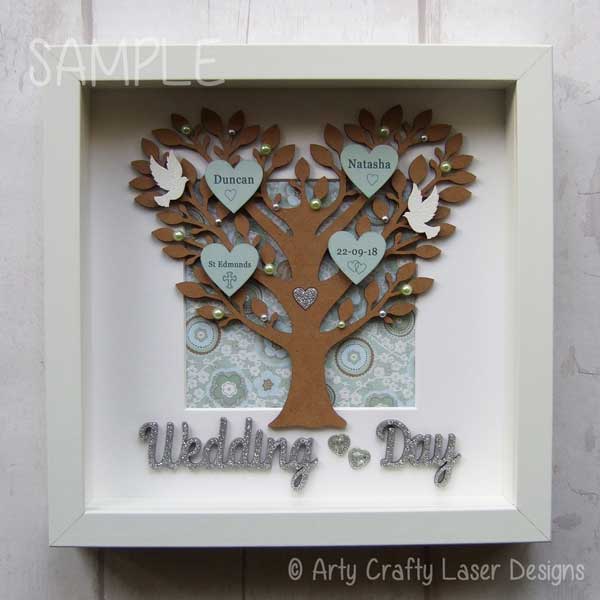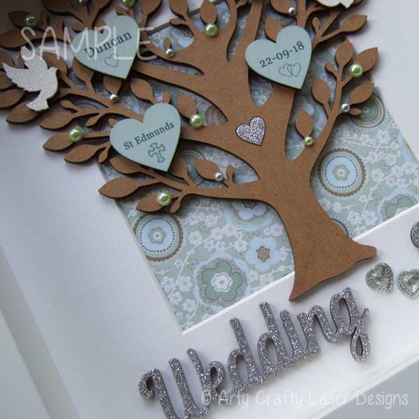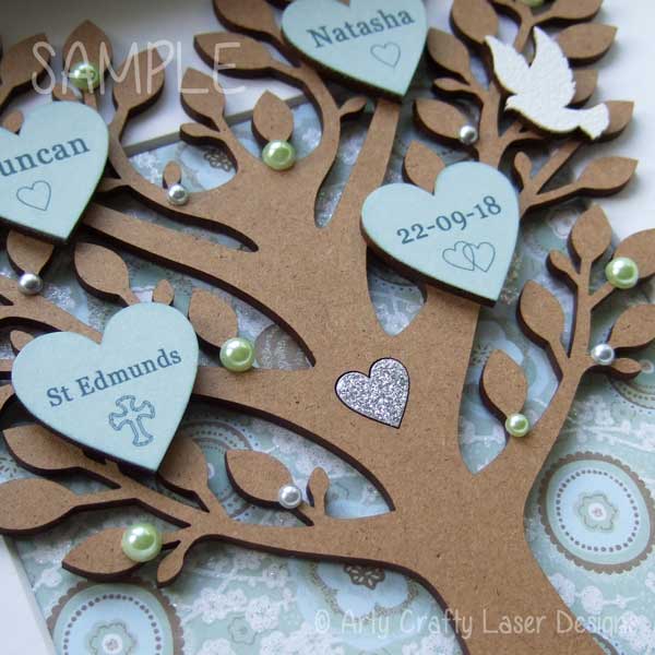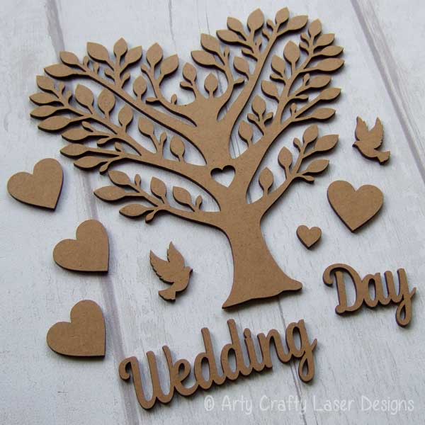 Mdf Family Tree Wedding Day Heart Shaped with Doves Laser Cut Craft Blank