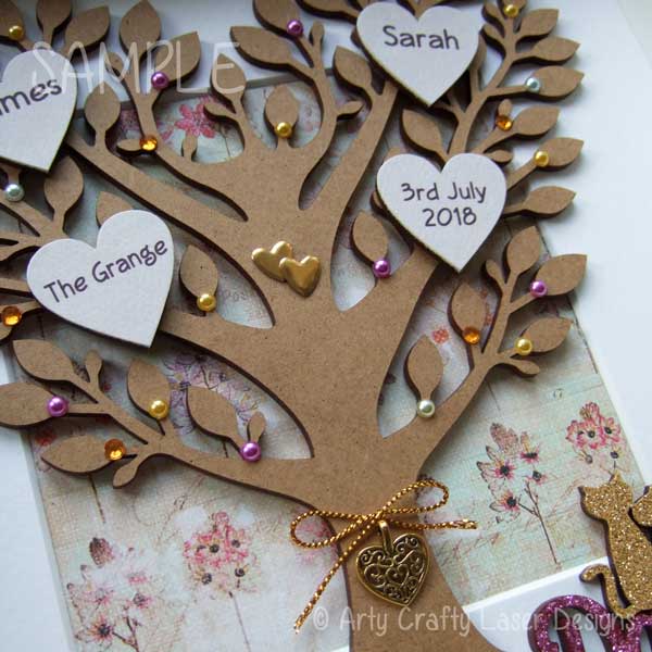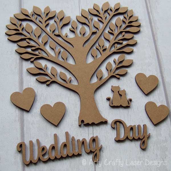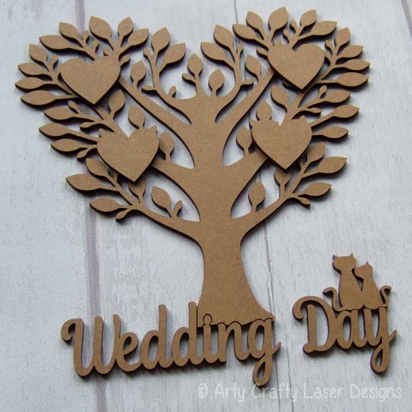 Mdf Family Tree Wedding Day with Cute Cats Laser Cut Craft Blank
