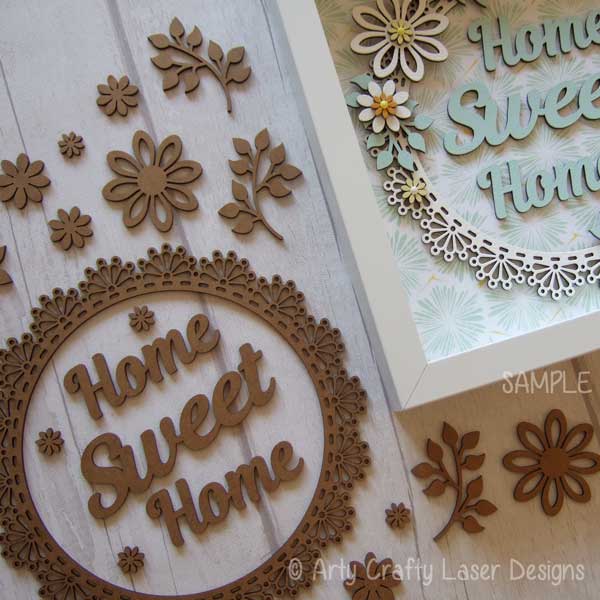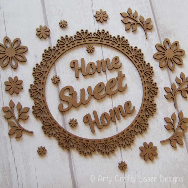 Mdf Home Sweet Home Floral Lace Wreath Laser Cut Craft Blank