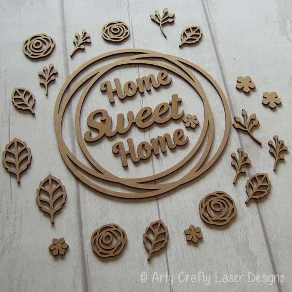 MDF Roses Wreath Home Sweet Home Shabby Chic Style Laser Cut Craft Blank